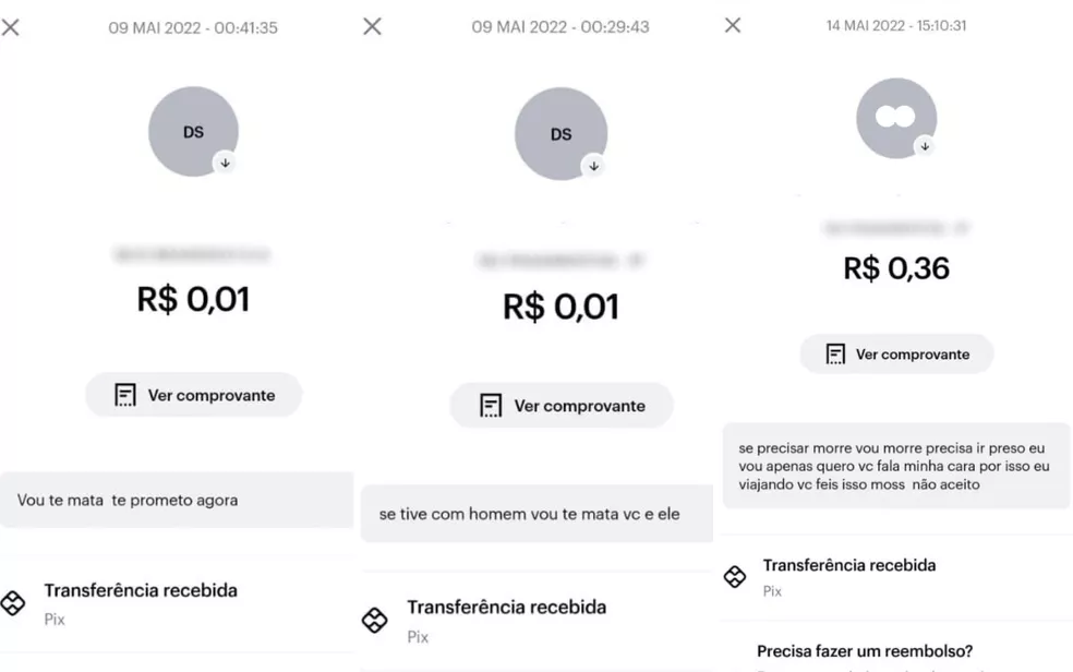 O mesmo aconteceu com um caminhoneiro de 29 anos preso por ameaçar a ex, de 19 anos, por meio de transferências via Pix em Aparecida de Goiânia. Bloqueado nas redes sociais após o término, ele passou a enviar valores de R$ 0,01 com mensagens com promessas de morte contra ela e possíveis parceiros dela. A investigação apontou que o relacionamento, de cerca de um ano, já era marcado por agressões físicas, injúrias e ciúmes.