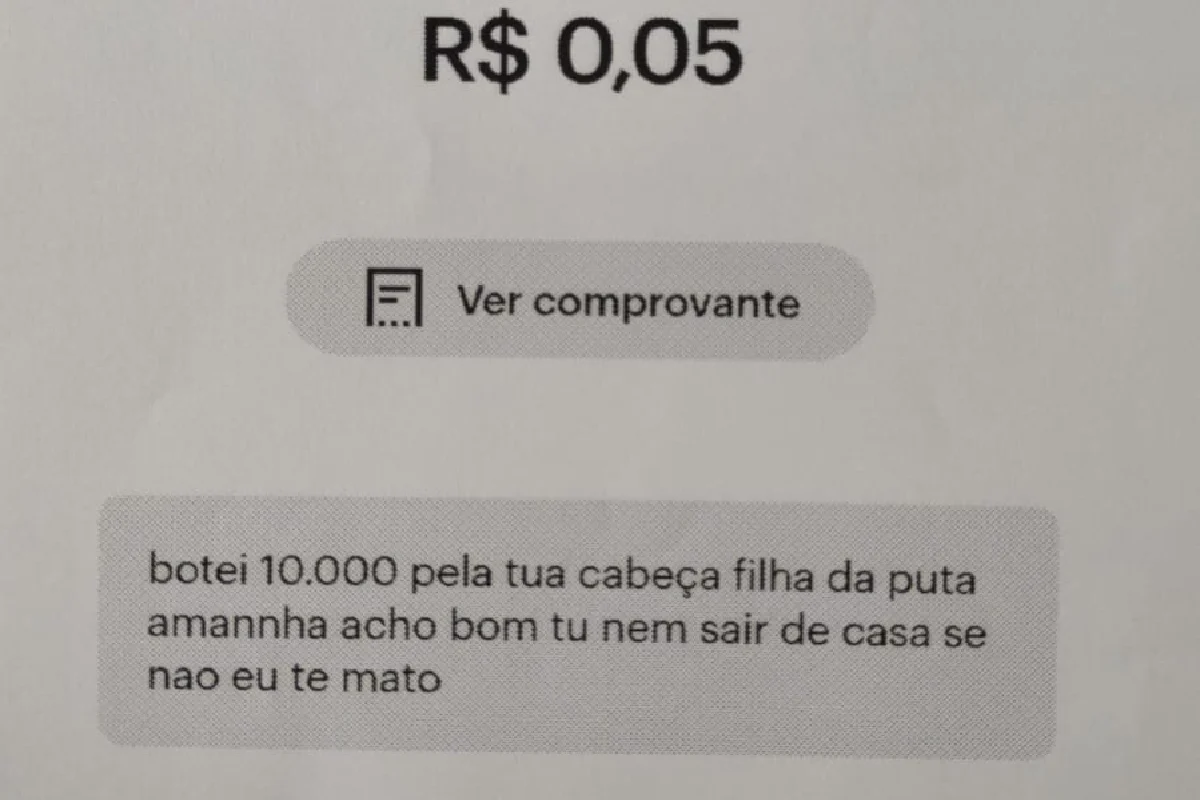 Em uma das ameaças enviadas por mensagens via PIX, homem diz que pagou R$ 10 mil para que matassem a ex-namorada. (Foto: Divulgação – PC)