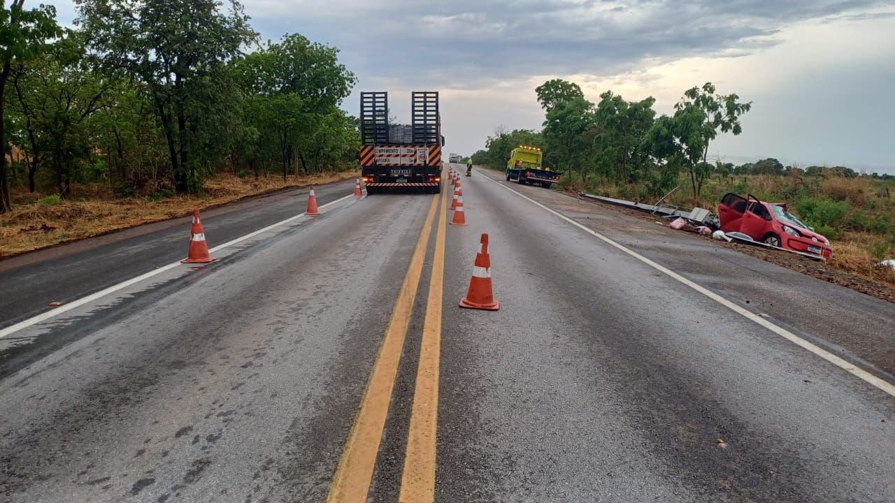 De acordo com informações preliminares, o veículo de passeio seguia no sentido sul da rodovia quando saiu da pista e colidiu contra um poste. Chovia no momento do acidente.
