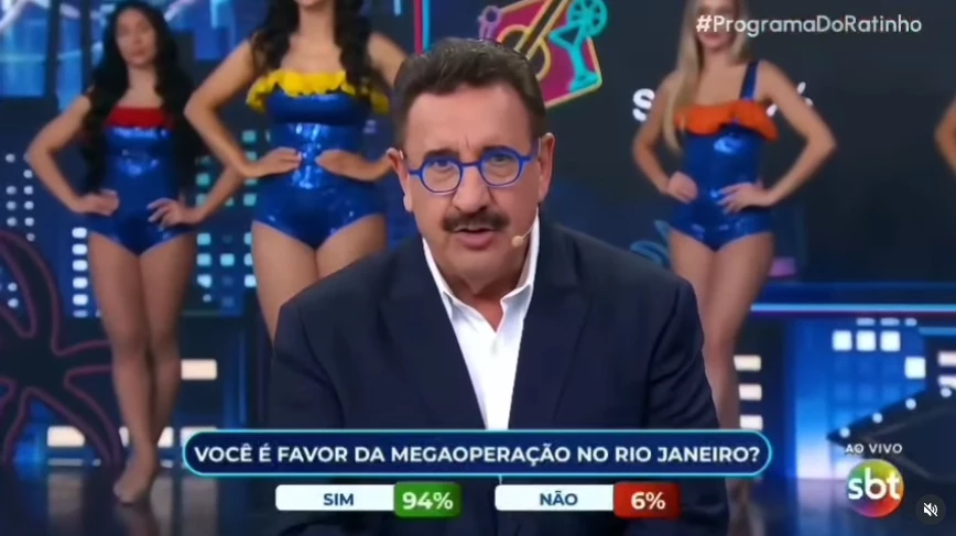 O apresentador Ratinho defendeu a operação policial realizada no Rio de Janeiro no último dia 28, e cobrou das autoridades um recrudescimento contra o crime. Em pronunciamento realizado durante seu programa, no SBT, o comunicador afirmou que “tá muito fácil para bandido aqui neste país”, e está na hora de os governantes tomarem providências contundentes no âmbito da segurança pública.