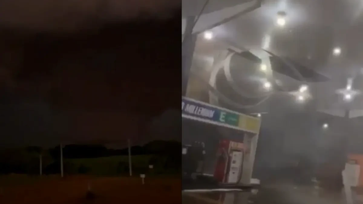 Imagens do circuito de vigilância do posto de combustíveis mostram a força do vento atingindo o forro do estabelecimento e arrancando parte da estrutura, enquanto registros da escola revelam salas alagadas durante a limpeza realizada após a tempestade. O Hospital Municipal Antônio Miguel Ferreira também teve corredores e salas alagadas, com servidores trabalhando para conter o avanço das águas e evitar maiores danos.