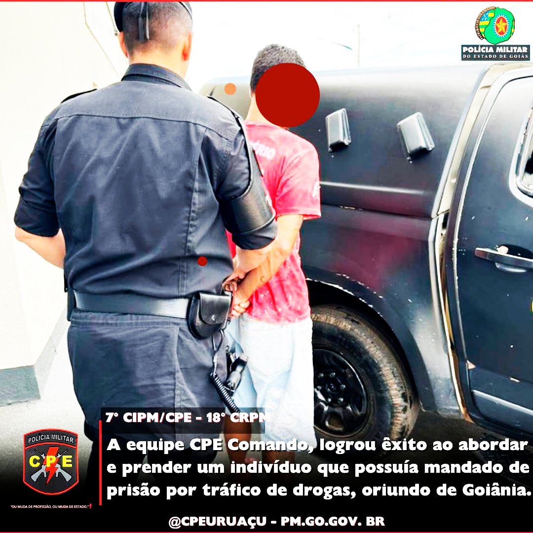 Um homem foi preso em Uruaçu sob uma ordem judicial por tráfico de drogas. Uruaçu – O grupo CPE Comando deteve um homem na cidade, com um mandado de prisão por tráfico de drogas expedido de Goiânia. O suspeito foi detido durante uma patrulha e agora se encontra à disposição da lei.